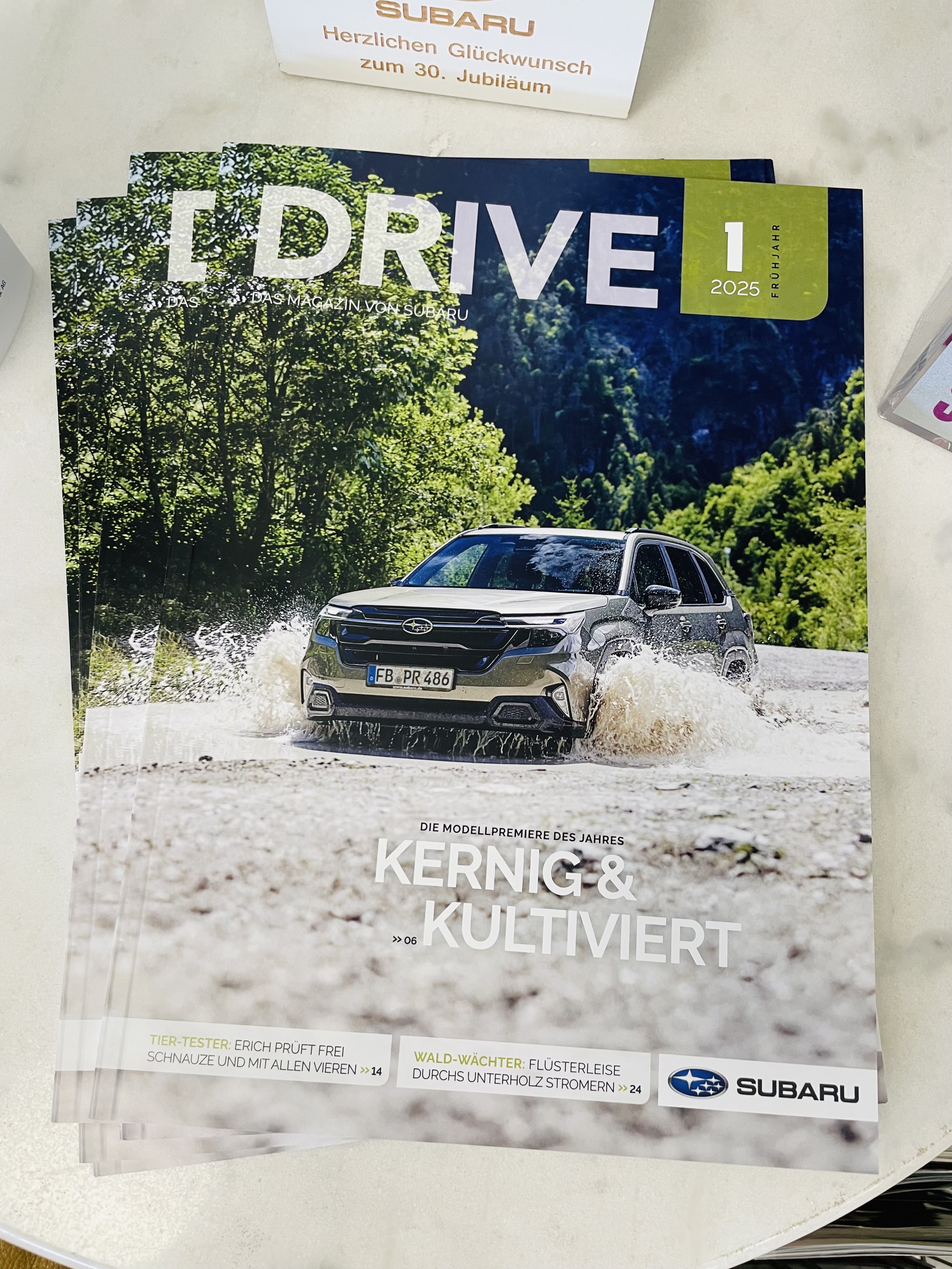 Für die Modellpremiere des Jahres nimmt Sie das Team der DRIVE mit auf den mystischen „Mont Ventoux“ in der französischen Provence. Die berühmte Bergetappe ist für Radsport-Athleten eine Legende – wir erklimmen sie souverän mit der neuesten Generation des Subaru-SUV. Anschließend stromern wir flüsterleise durchs Unterholz: Die Förster der Niedersächsischen Landesforsten fahren zu ihrem Arbeitsplatz in der Natur nämlich umweltfreundlich mit vollelektrischen Subaru. Wir durften die Wächter des Waldes und Dackel Fiene einen Tag lang begleiten. Apropos Dackel: Wussten Sie, dass etwa 40 Prozent der Subaru-Kunden einen Hund haben? Für Vierbeiner und Besitzer bietet die Marke entsprechendes Zubehör, das Erich – der Bürohund von Subaru Deutschland – einem Test frei Schnauze unterzieht. Darüber hinaus haben wir in dieser Ausgabe der DRIVE wertvolle Tipps und Infos rund ums Fahren mit einem Anhänger für Sie zusammengestellt. Für einen sauberen Abschluss nach all dem Off- und Onroad-Einsatz waren wir dann noch zu Gast in einer Waschanlage der Superlative. Das alles lesen Sie im Subaru Magazin DRIVE, das wir Ihnen als gedrucktes Heft kostenfrei nach Hause liefern.